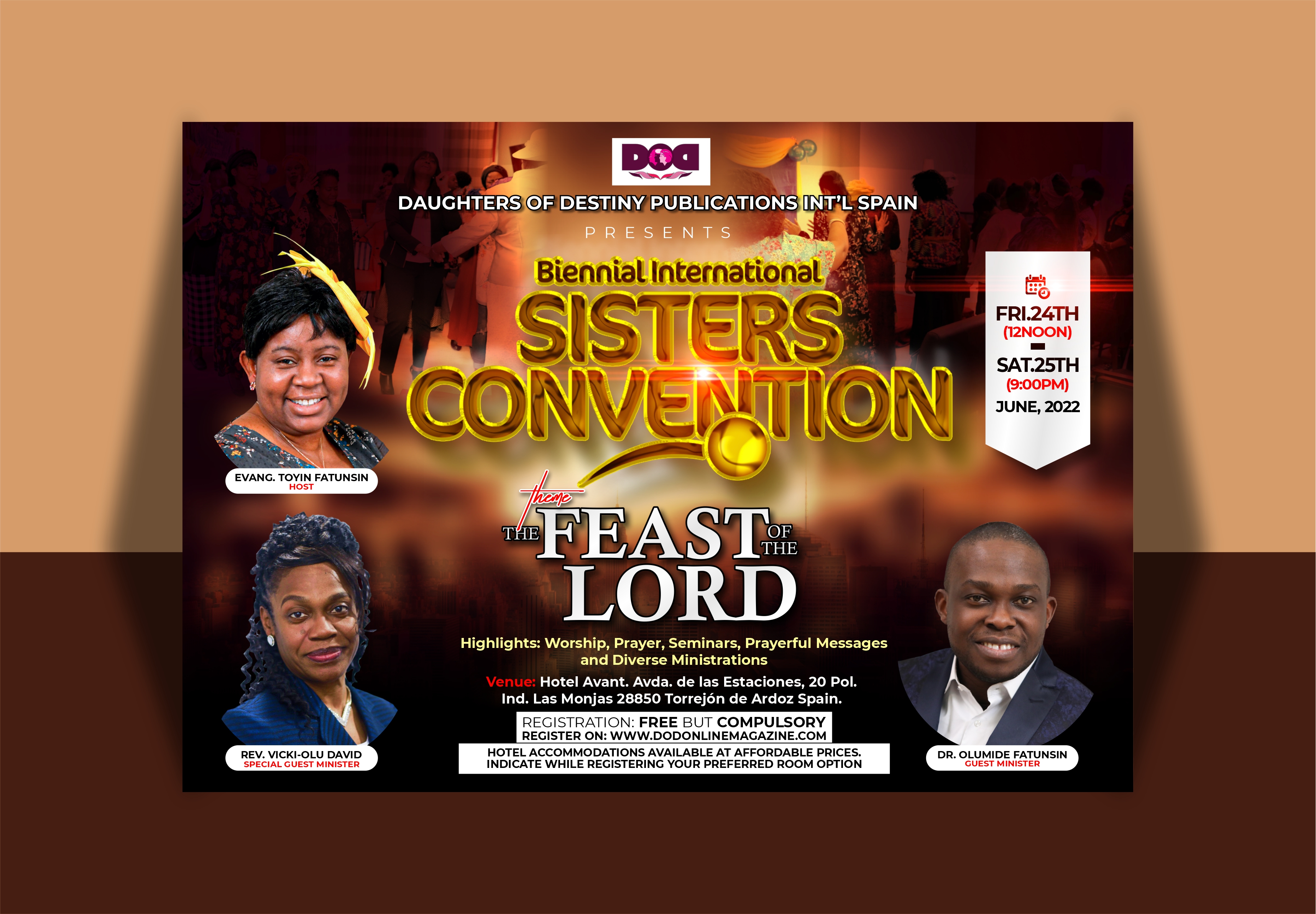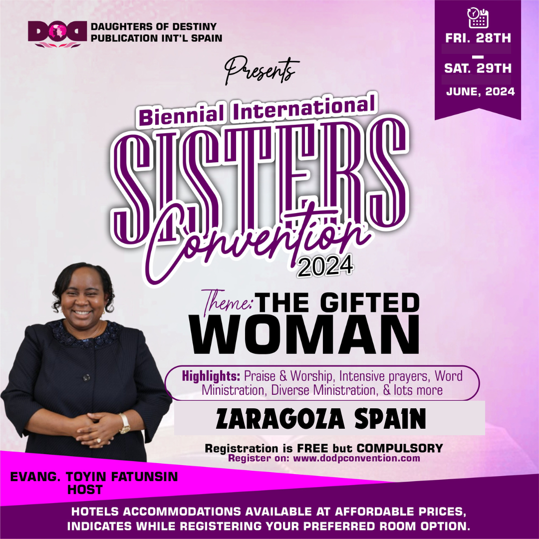 After a series of time out programme in various European countries by organized for members of the Daughters of Destiny Publications Facebook group and Online Fellowship and for women in general of; the Lord inspired Evangelist Toyin Fatunsin, host and founder of the ministry to start a biennial convention in 2014 to empower, liberate and inspire God's daughters from all over the world.