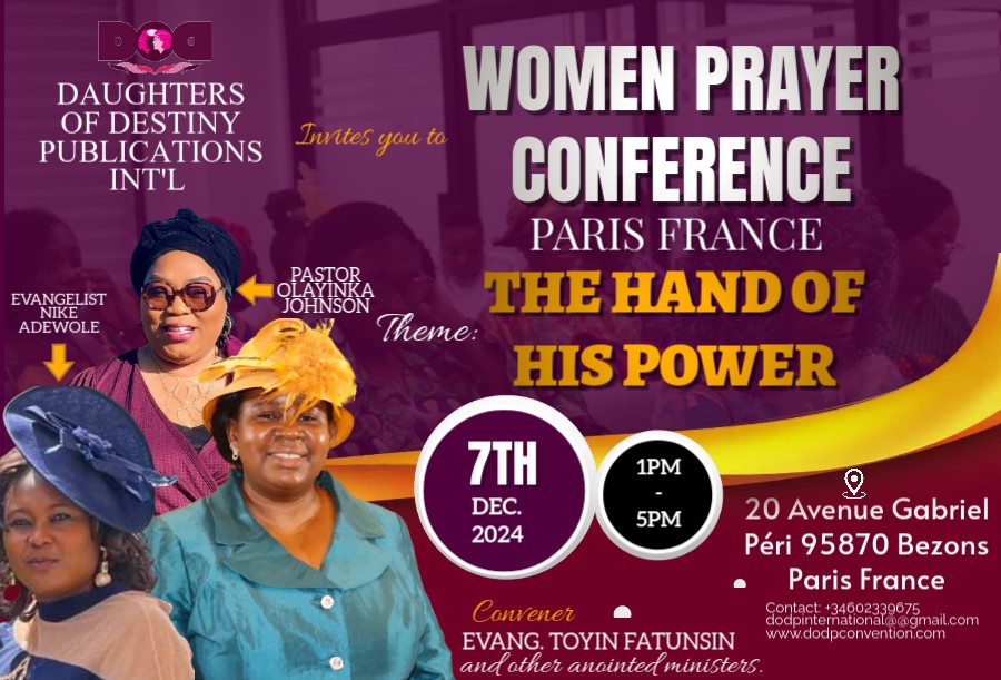 All women, single and married are welcome. The program will hold from 1pm through 5pm on Saturday 7th Dec. 2024 at 20 avenue Gabriel Peri , 95870 Bezons, France