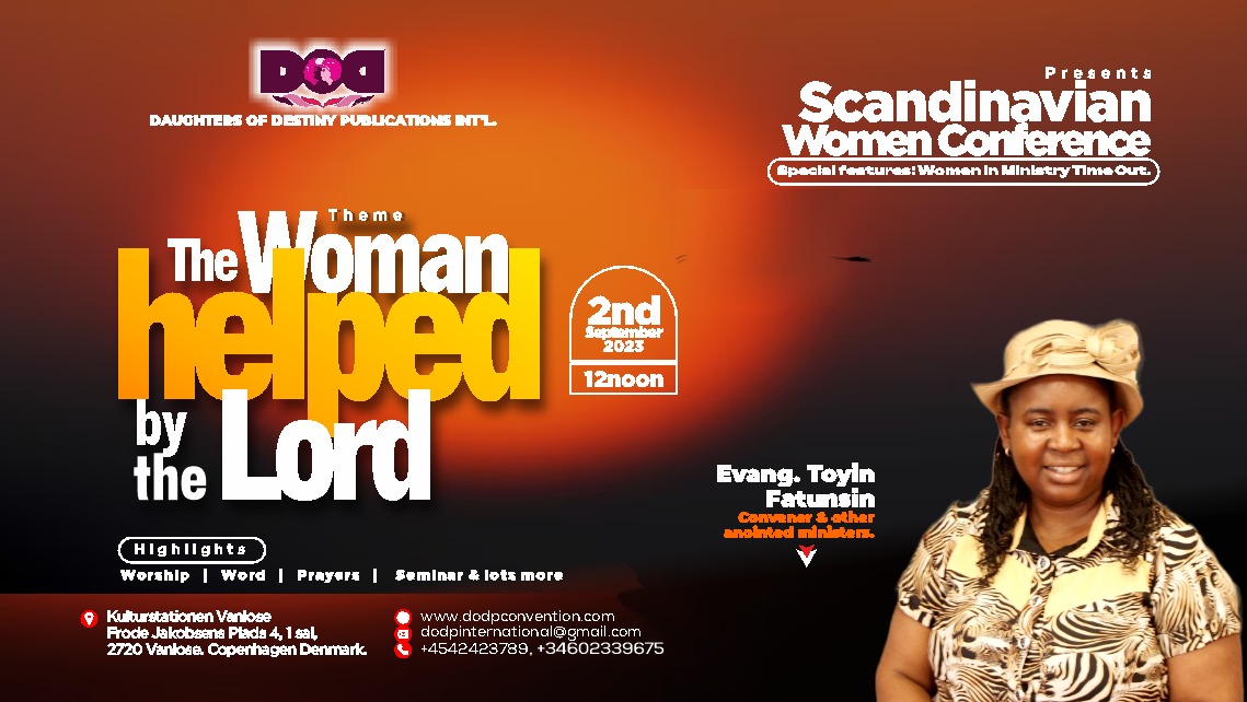 Evangelist Toyin Fatunsin will be convening the Scandinavian women conference and would be ministering in word by the grace of God. She is a woman who loves the Lord and loves to do his will. Read more about her by clicking on the link: